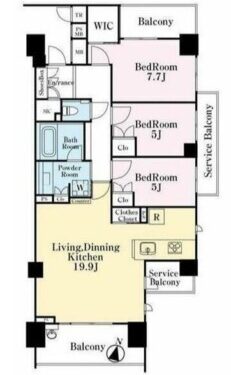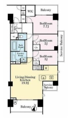 | 間取内容 | LDK19.9畳 洋室7.7畳 洋室5畳 洋室5畳 |