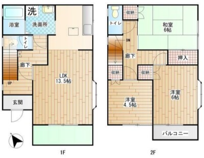 | 間取内容 | LDK13.5畳 和室6畳 洋室6畳 洋室4.5畳 |