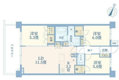 | 間取内容 | LDK14.7畳 洋室6畳 洋室5.3畳 洋室5畳 |