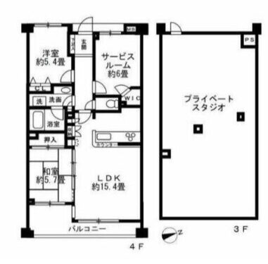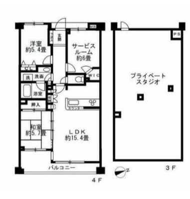間取内容 LDK15.4畳 和室5.7畳 洋室5.4畳 S6畳 その他37.6畳